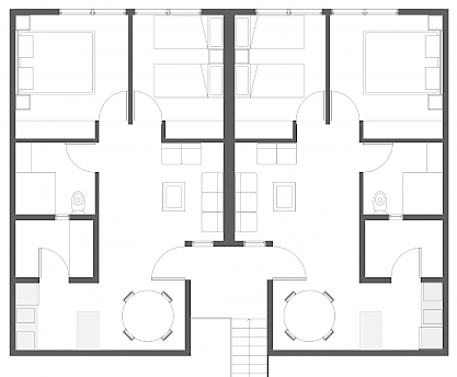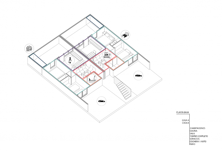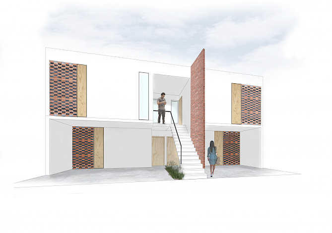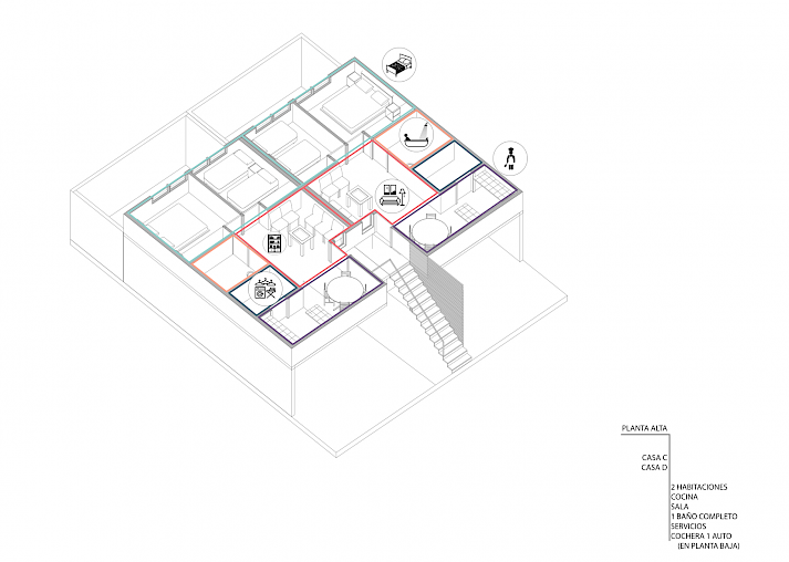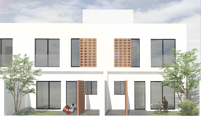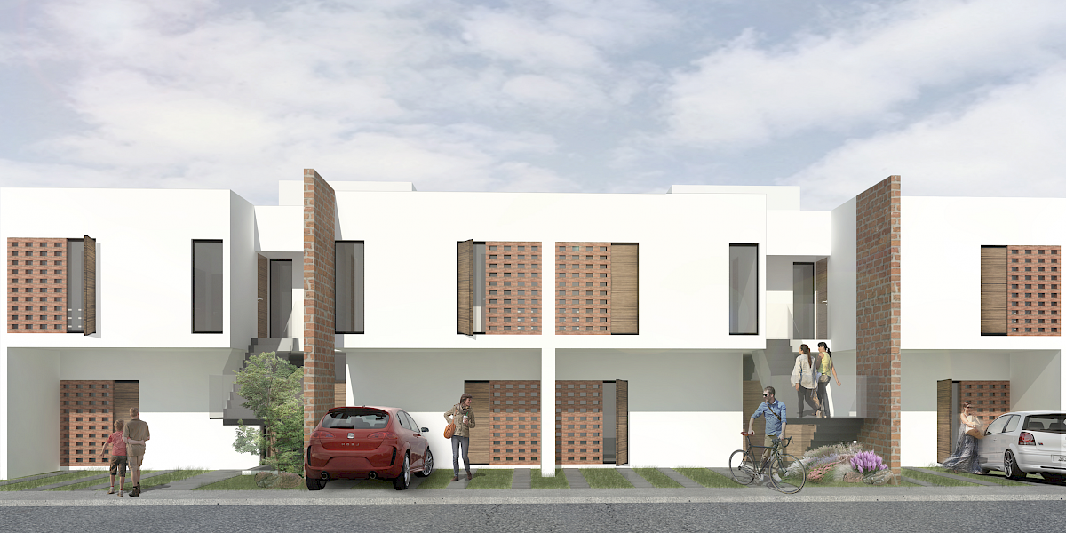 Uno de los objetivos fueron identificar el mercado al cual estaba dirigido, es a partir de eso la selección de un sistema constructivo tradicional y materiales típicos de la arquitectura de la región, entre los que destacan el uso del ladrillo o tabique, todo esto dentro del presupuesto establecido. Otro de los objetivos fue la dignificación de la vivienda mediante espacios interiores iluminados, privacidad de los espacios, utilizando elementos de postigos de madera de pino y celosías de material, el resultado una fachada plástica donde el conjunto de las seis casas trabaja como una unidad.