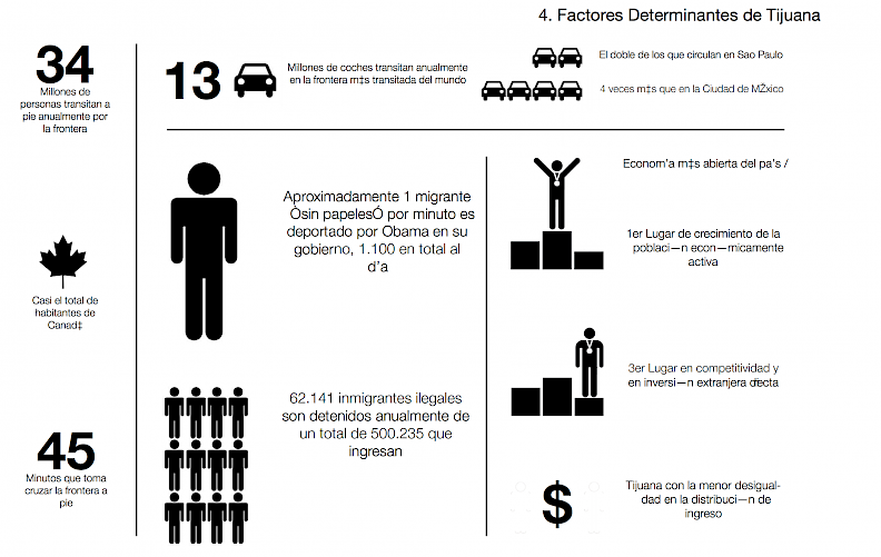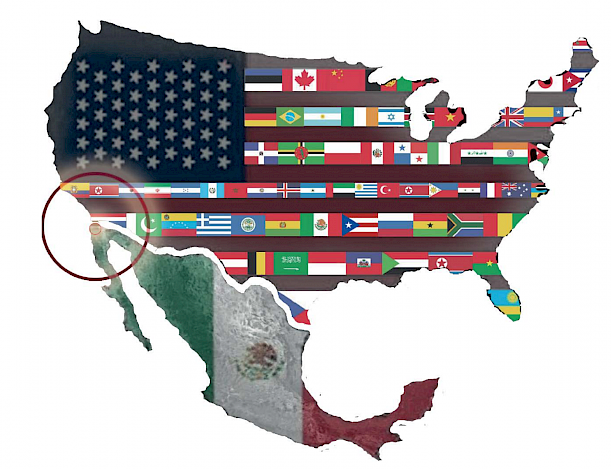 Estados Unidos es el país con más inmigrantes en el mundo y México la nación con más migrantes, esto da lugar a la división exacta: la frontera. Los “barrios fronterizos dejan al descubierto los problemas de los límites políticos”. (Álvarez, 2011). La frontera de Tijuana escenifica la pugna del control de migraciones, tráfico de drogas y armas. A su vez representa el paradójico regodeo en la ideología estadounidense, expresada en su superioridad étnica y dominio.