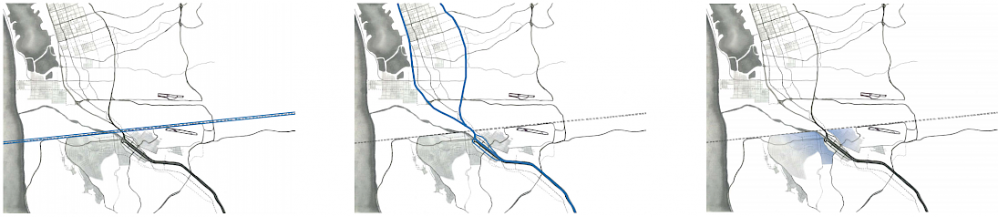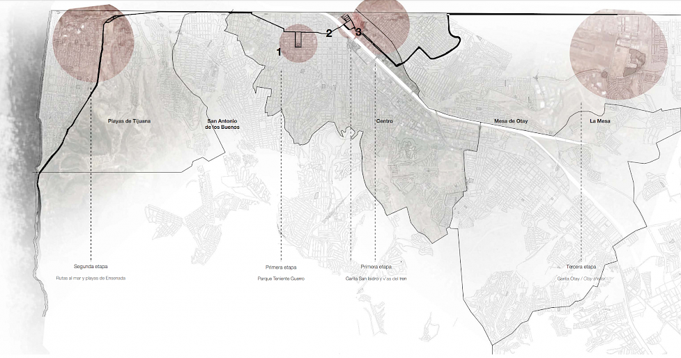 Tres etapas de Masterplan En los alcances a futuro de la propuesta, se busca conectar las costas del océano pacífico, que han sido olvidadas, hasta la garita de Otay cuya característica primordial es el transporte comercial e industrial. Creando así un corredor con 5 puntos focales interviniendo en las delegaciones de Playas de Tijuana, Centro y Mesa de Otay.